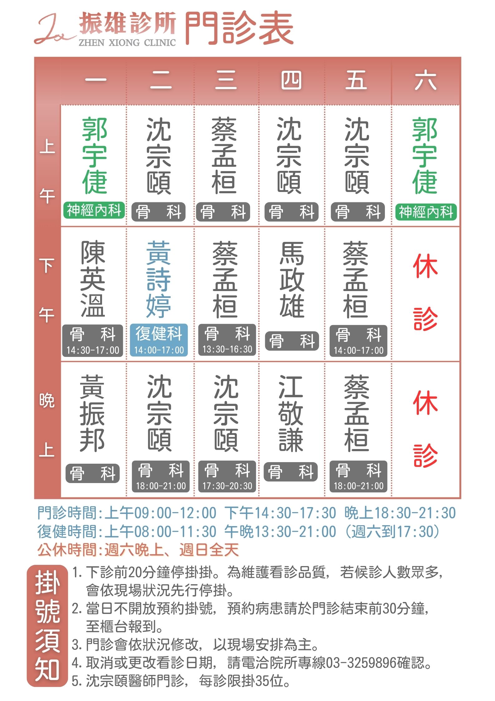 門診時間表 | 1/12~1/17門診表