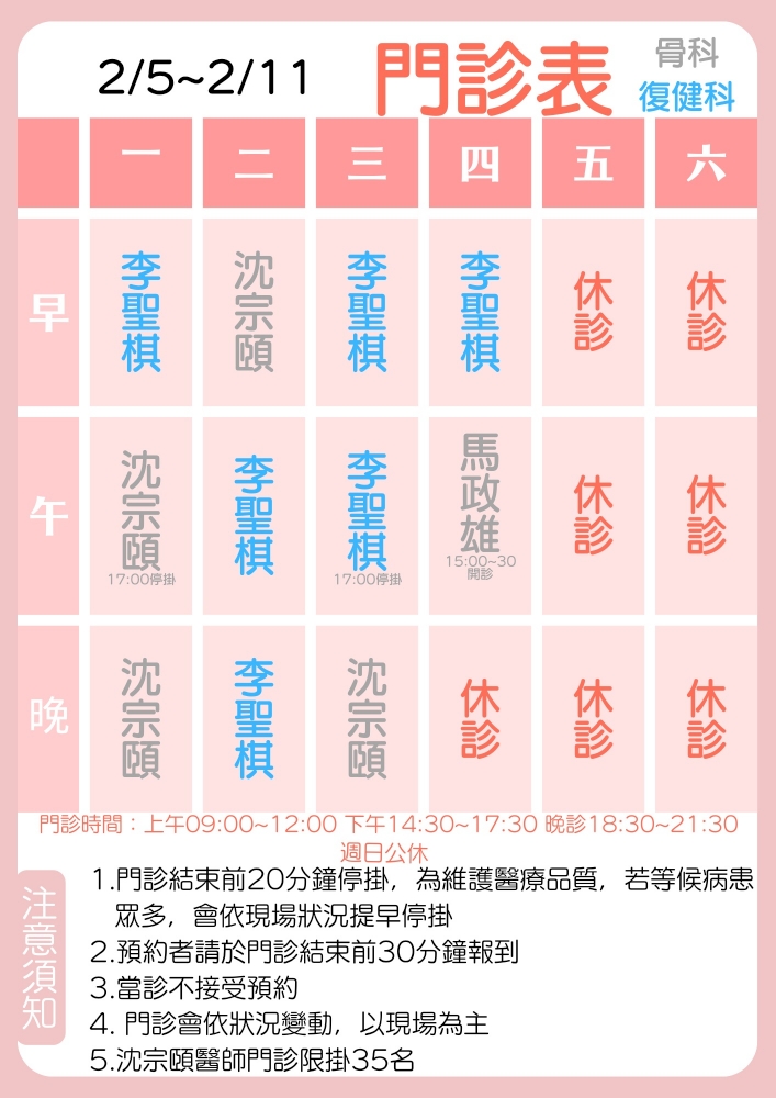 | 2/5~2/11門診表