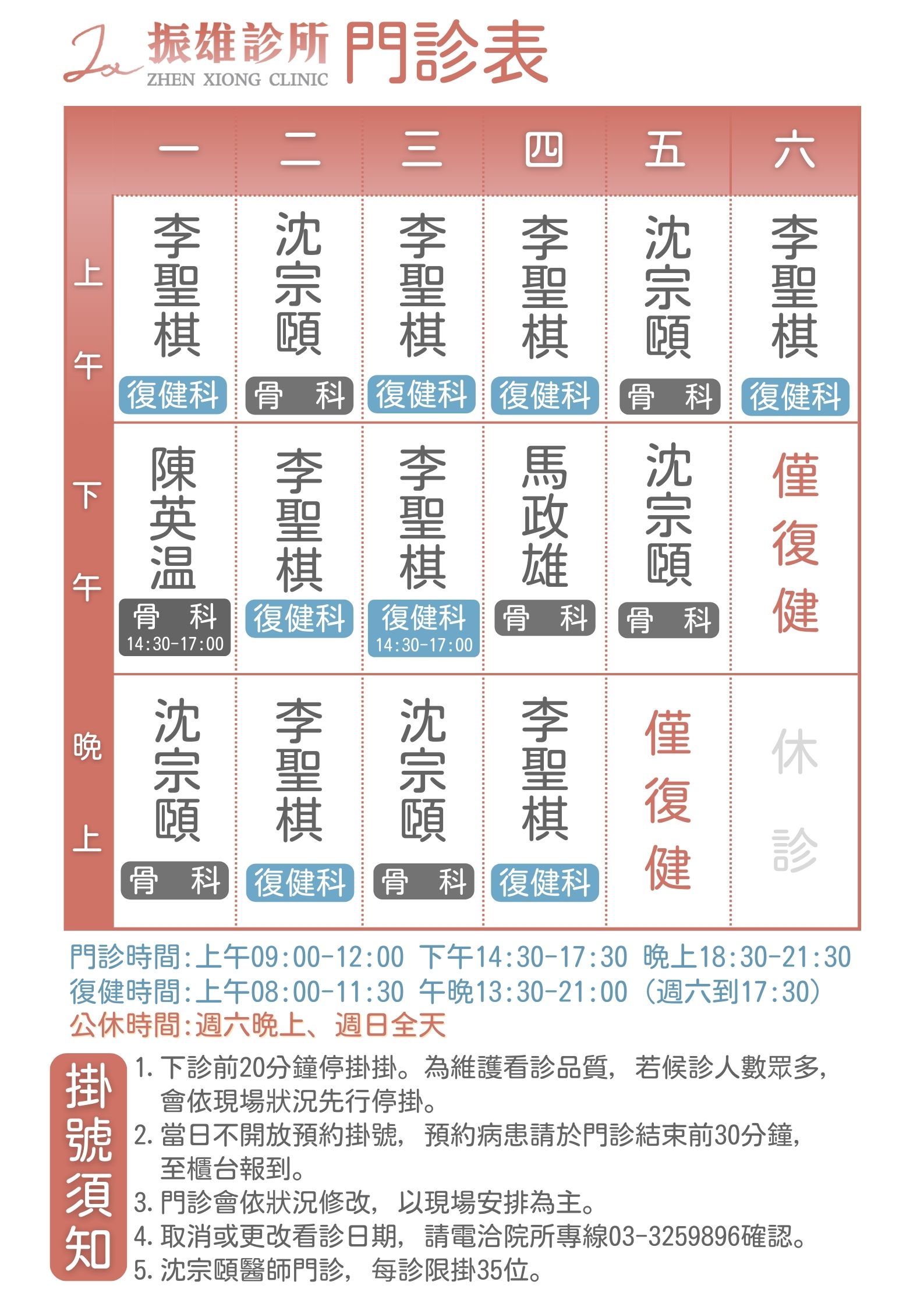 | 4/15 ~ 4/20門診表