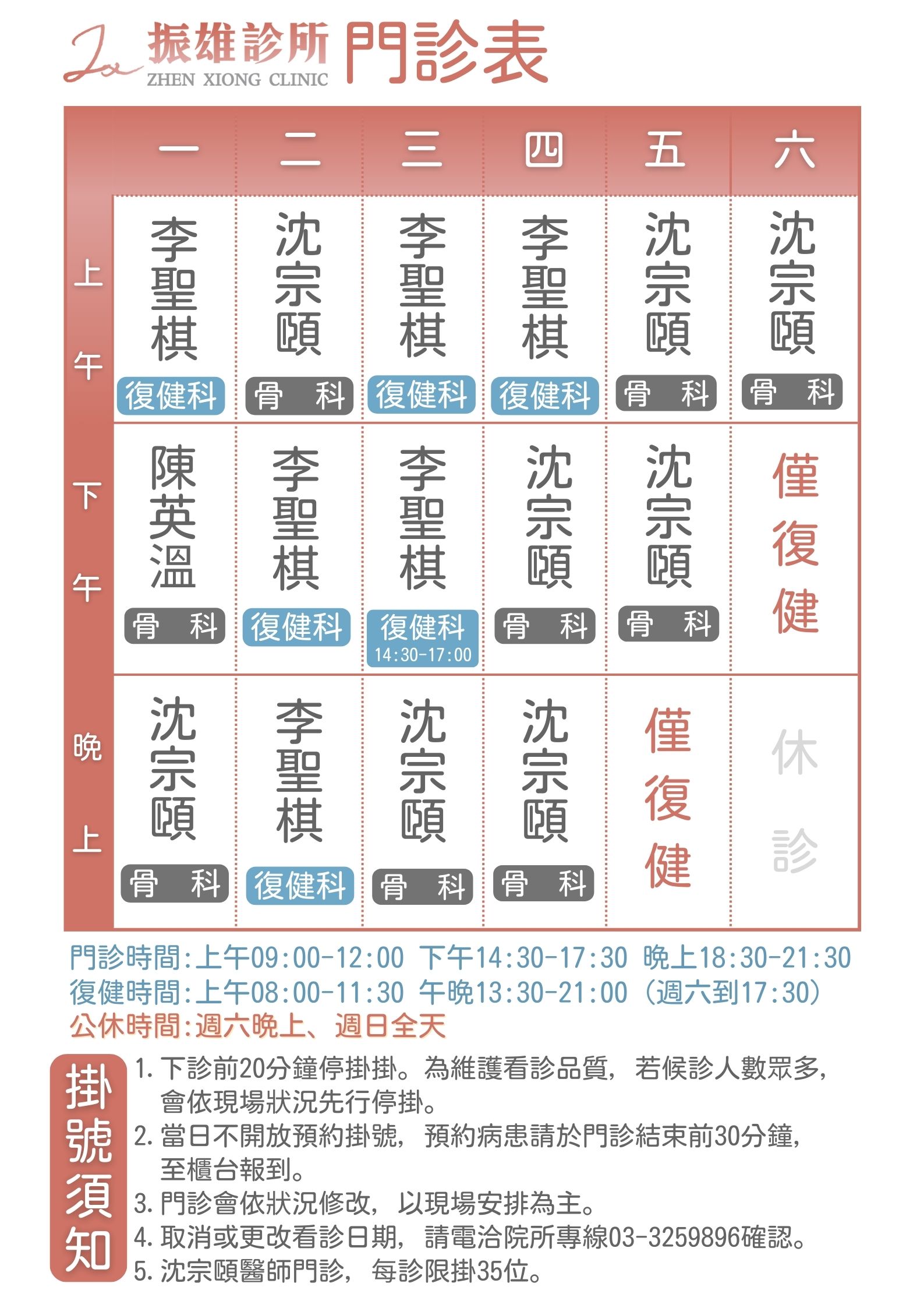 | 12/16~12/21門診表